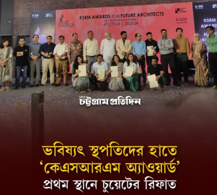কেএসআরএম অ্যাওয়ার্ড পেলেন তিন ভবিষ্যৎ স্থপতি, প্রথম চুয়েটের রিফাত